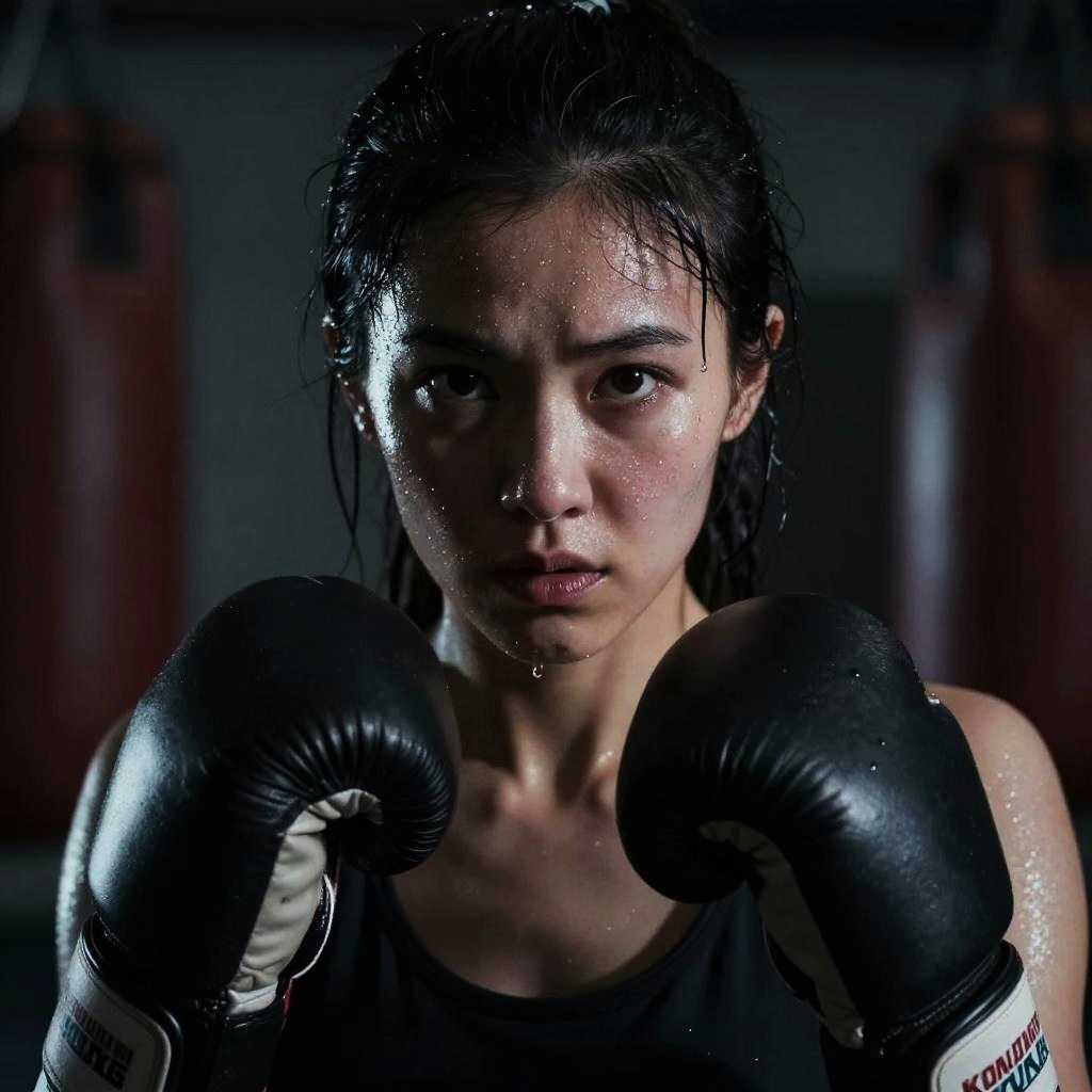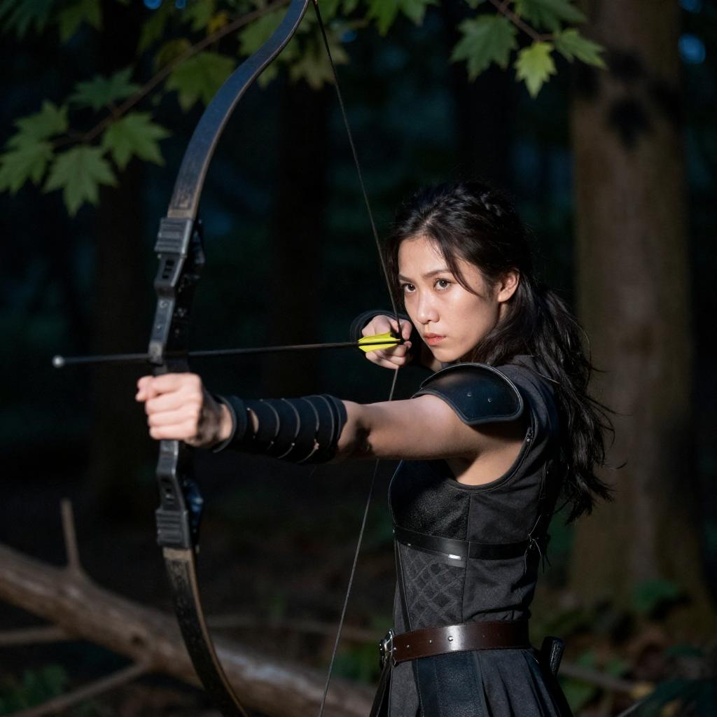 Intense Woman with Bow in Focus