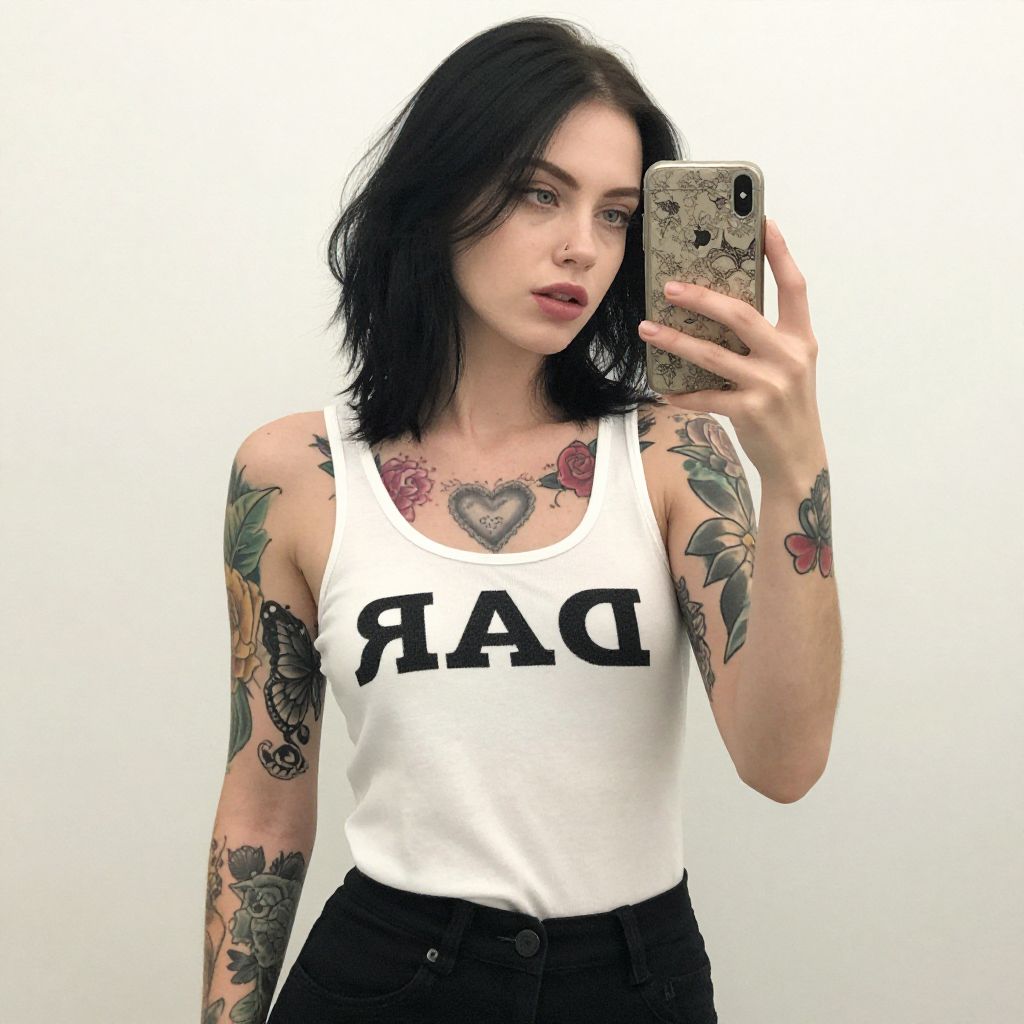Tattooed Woman Mirror Selfie