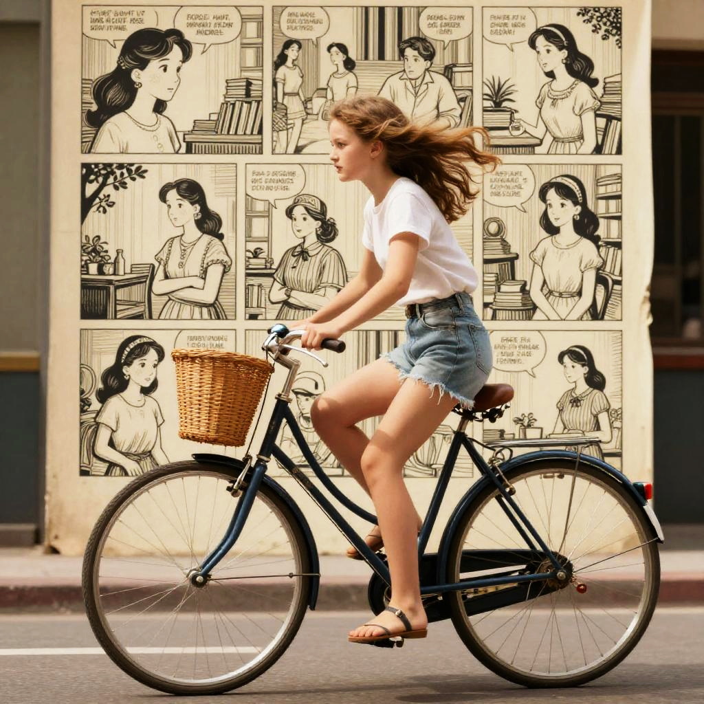 A group of women riding bicycles, city sidewalk on a bright day, vintage style bikes, flowing skirts, playful spirits, golden hour, ultra-realistic, magazine cover photo aesthetic, Polaroid f/2L USM, 8K.