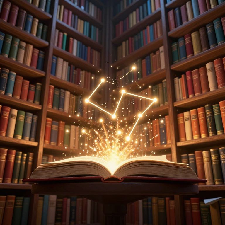 In a fantastical digital art rendering, an enchanting library bathed in dramatic lighting features towering bookshelves filled with colorful spines, where an open book emits golden sparks and constellations of light, symbolizing the magic of imagination and creativity.