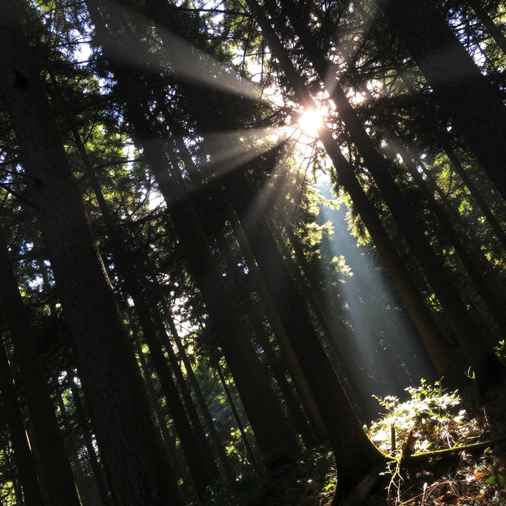 Tilted Forest with Sun Rays