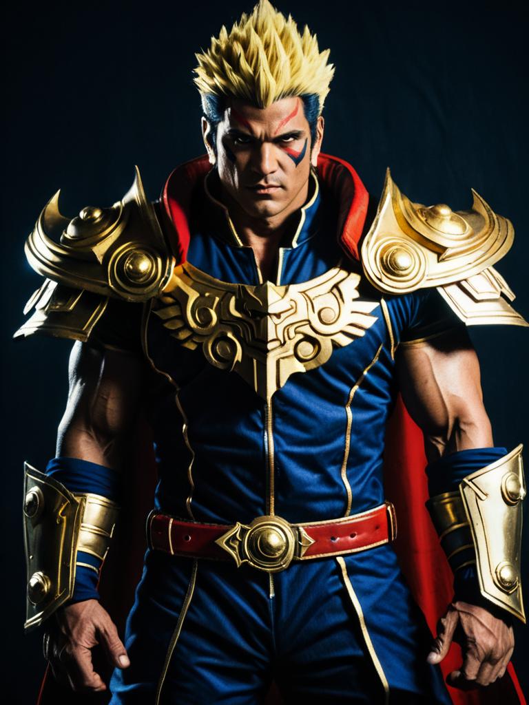 Man cosplay. Wearing Raoh costume. Realistic photo. Dressed as Raoh --sref 1399