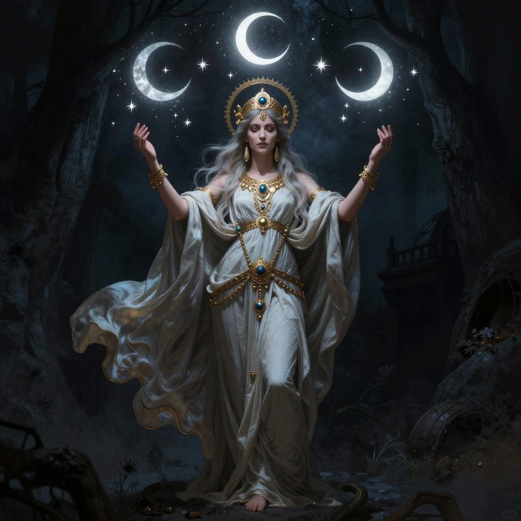 Mystical Sorceress Hécate Summoning Spirits