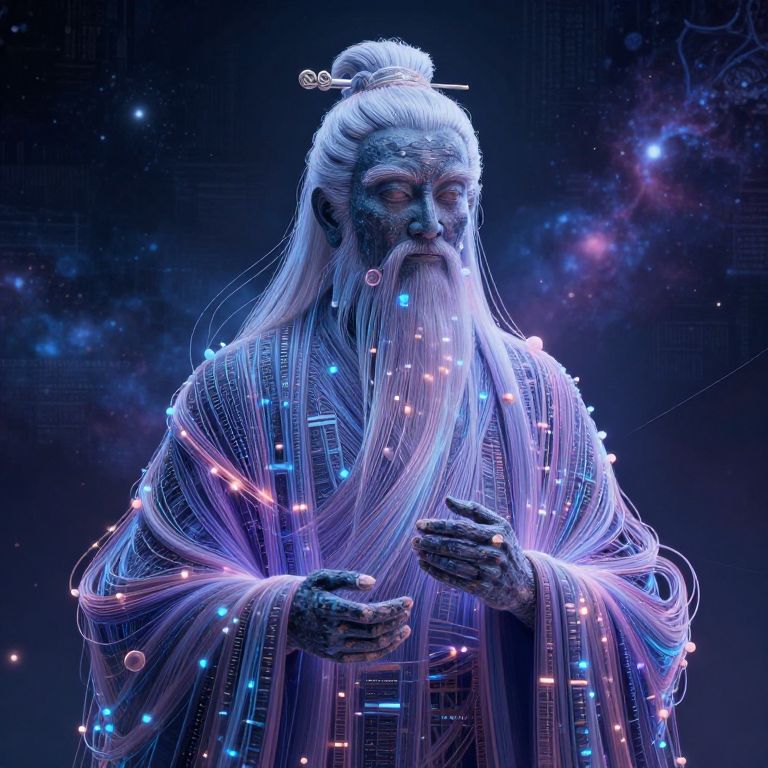 Graduated Nd Filter An ancient sage made of data, quantum fibres, 8 dimensional being, cosmos, transcendent,