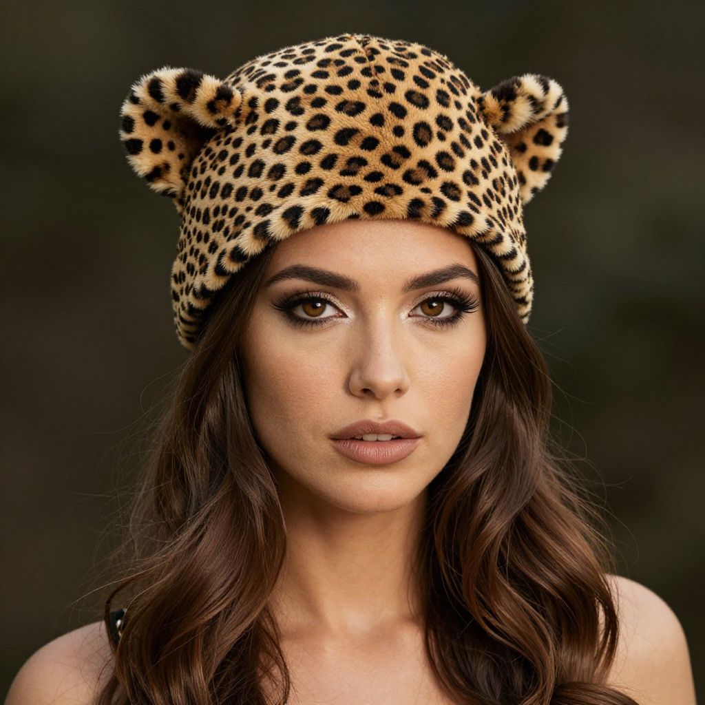 Woman Wearing Leopard Hat with Cheetah