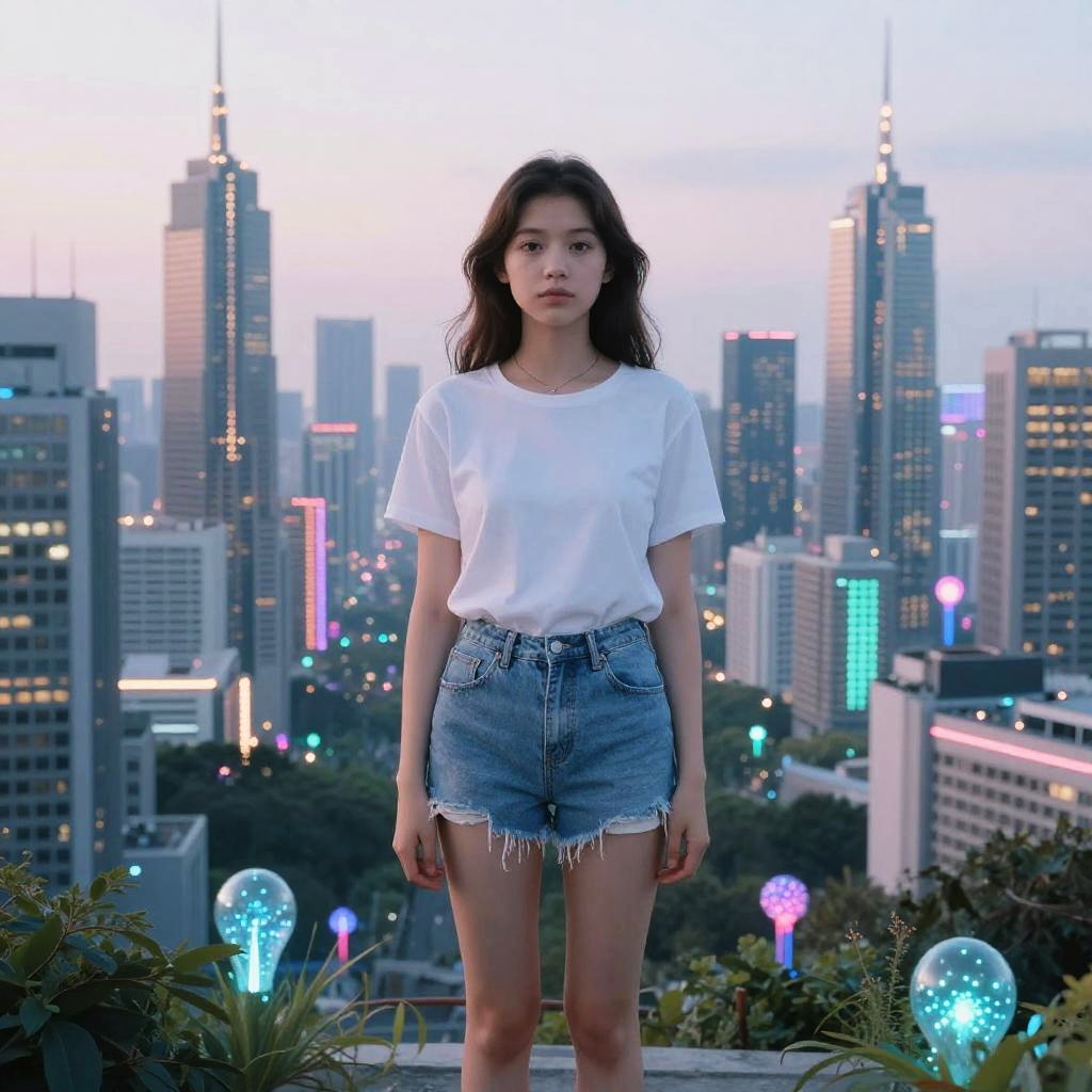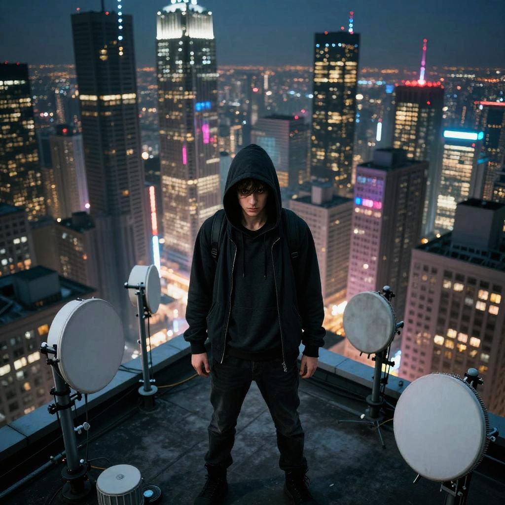 Futuristic Young Hacker in Megalopolis