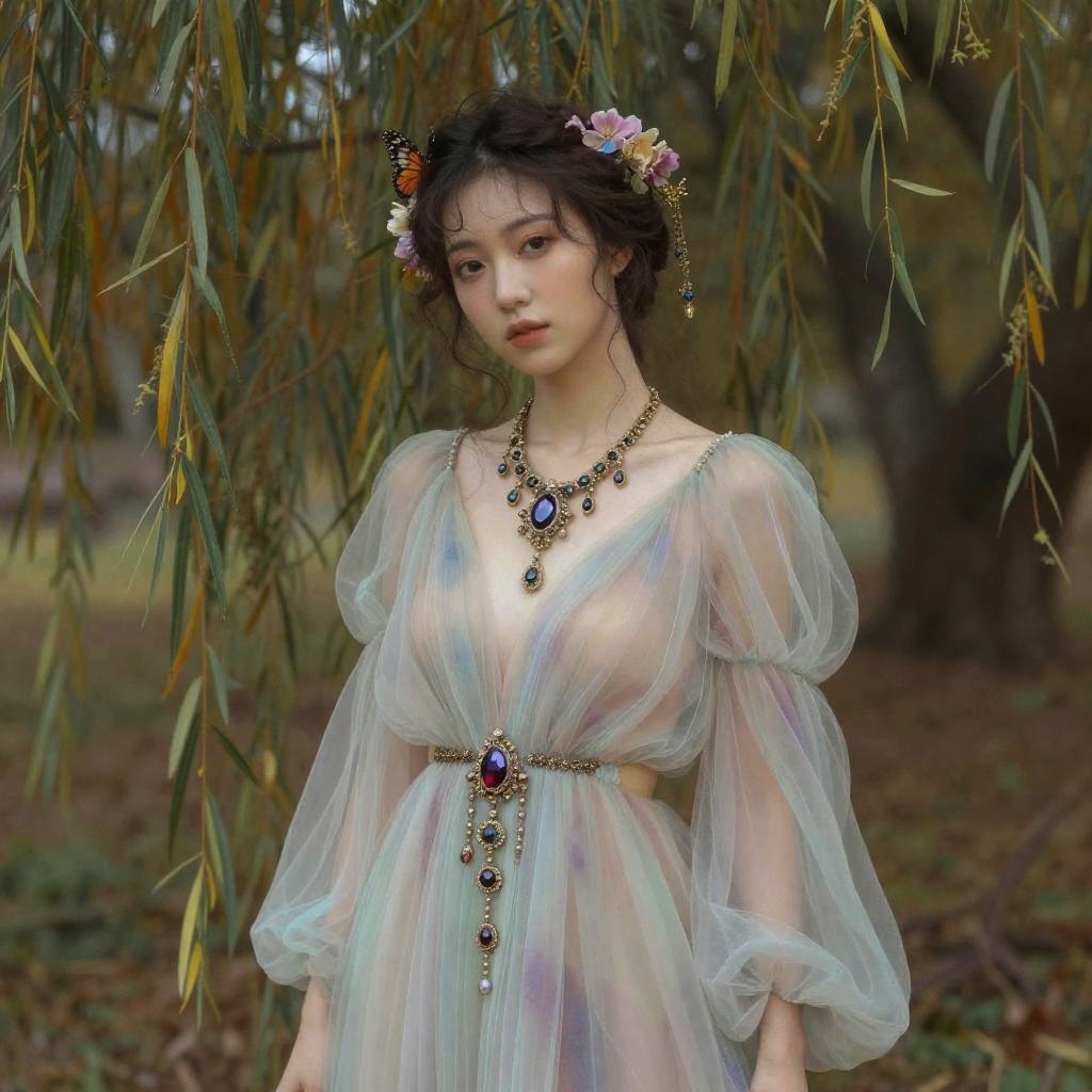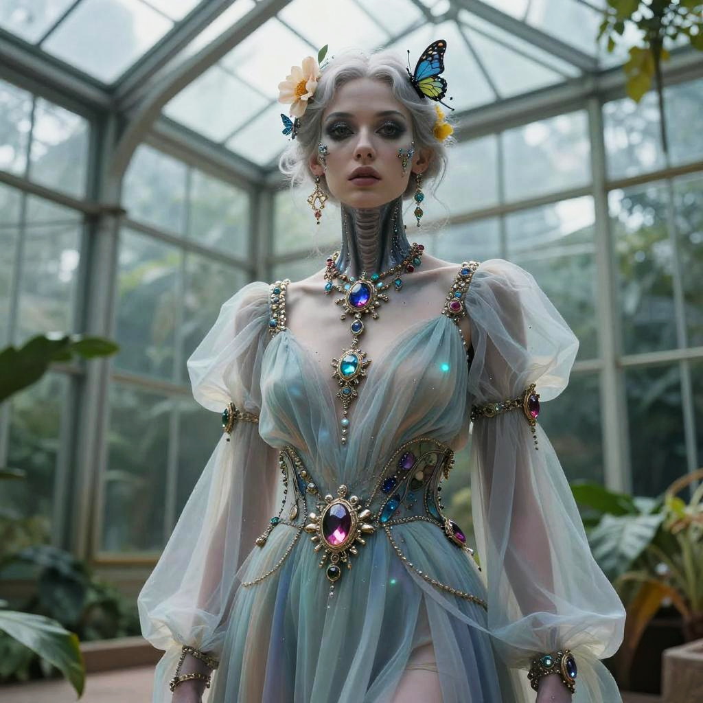 Fantasy Girl with Floral Crown and Birds