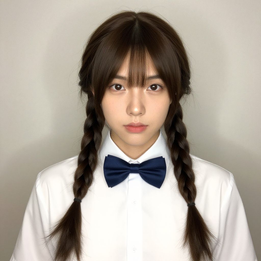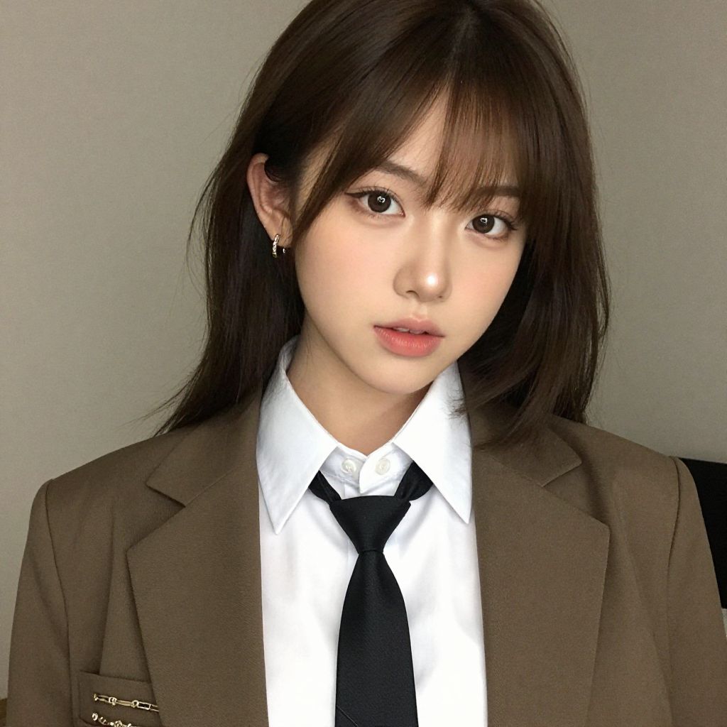 "eri costume hero academia, 1girl, solo, necktie, looking at viewer, realistic, shirt, jacket, white shirt, collared shirt, red necktie, closed mouth, hair ornament, upper body, school uniform, blonde hair, brown hair Realistic photo of casual sexy person with pretty face"
