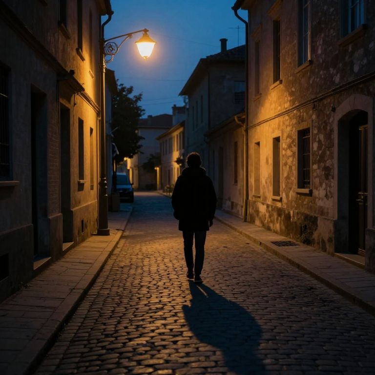 In the hushed embrace of twilight, a solitary figure stands beneath the glow of a streetlamp, their shadow stretching endlessly down the cobblestone path, weaving a tapestry of solitude and introspection amidst the echoes of forgotten stories and unspoken dreams.