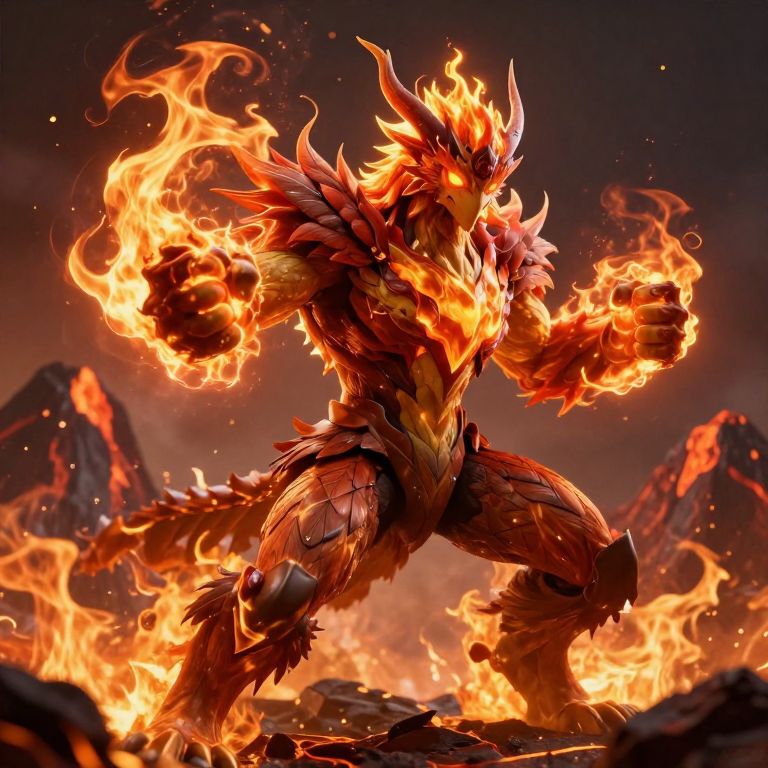 Blaziken in Fiery Volcanic Battle Stance