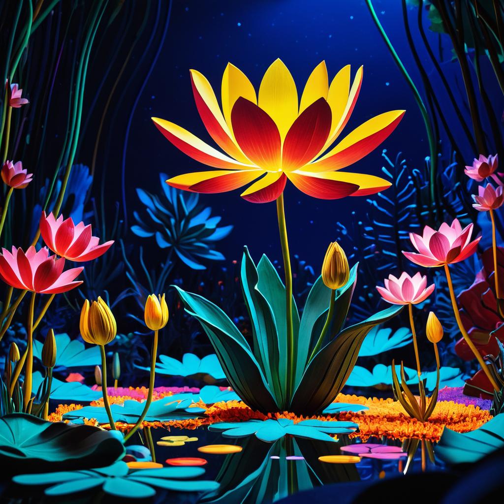 Surreal Neon Lotus Miniature World