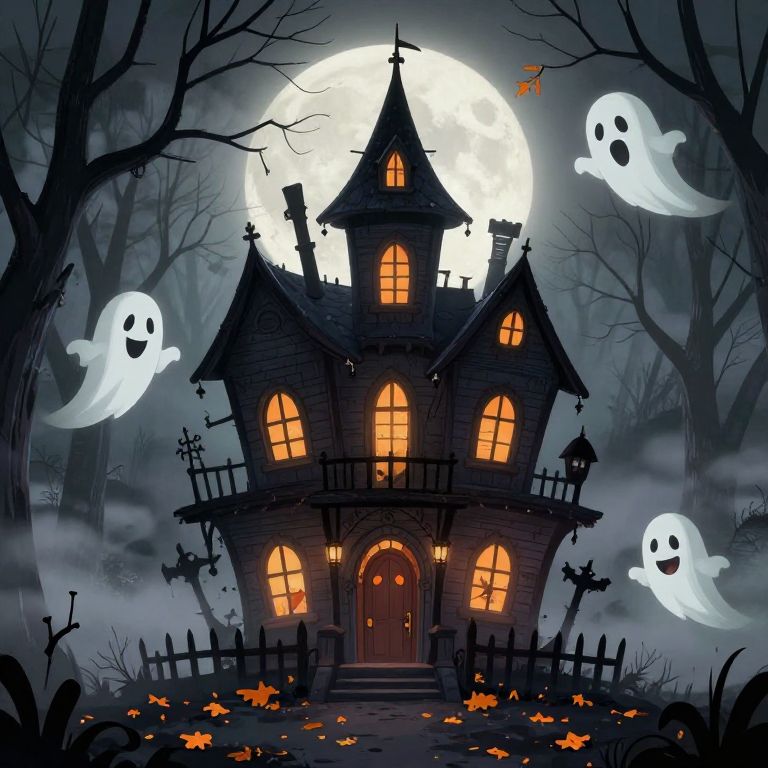 Charming Cartoon Haunted Mansion Scene