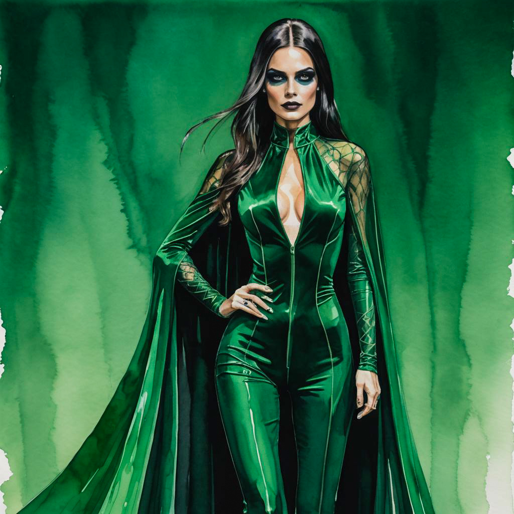 Photo of a V-Taper woman, Textured Crop, stripper outfit, Gold glitter push-up bra with matching sequined hot pants, Clear thigh-high stiletto boots with rhinestone accents, STYLE:ib technicolor film stock