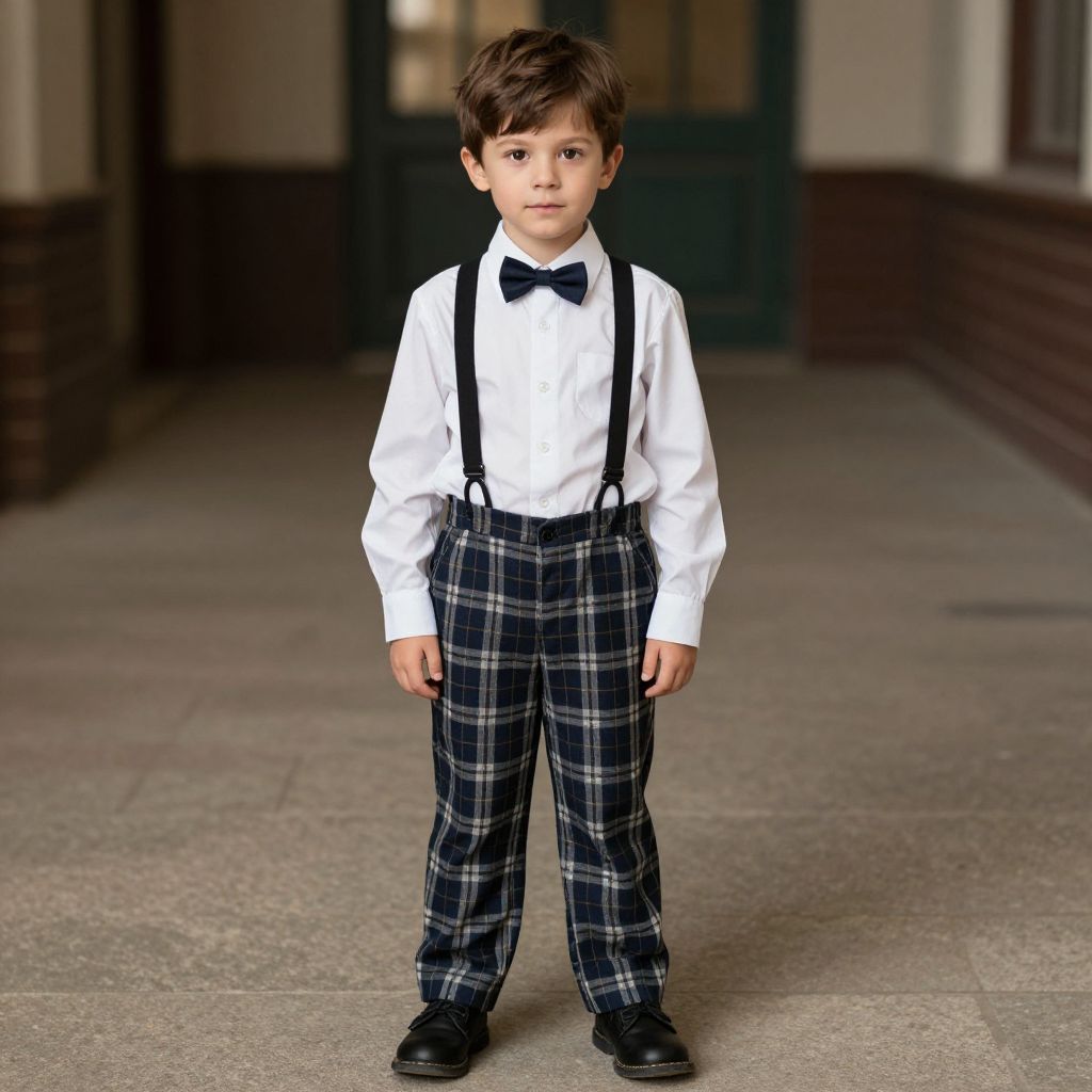 Realistic Boy in Plaid Overalls