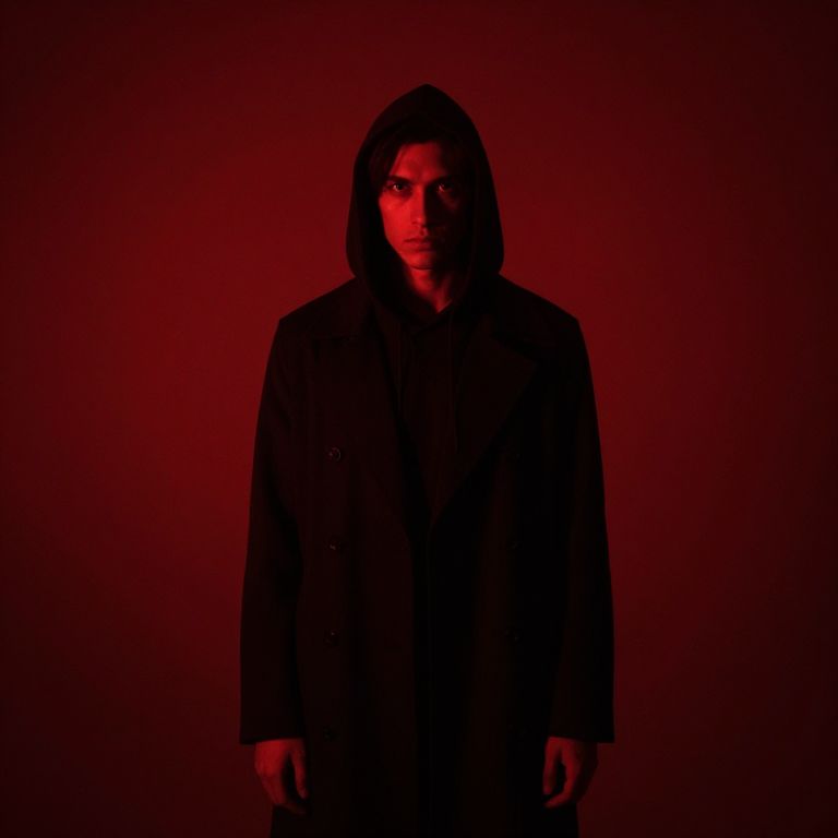 Solitary Figure in Crimson Shadows