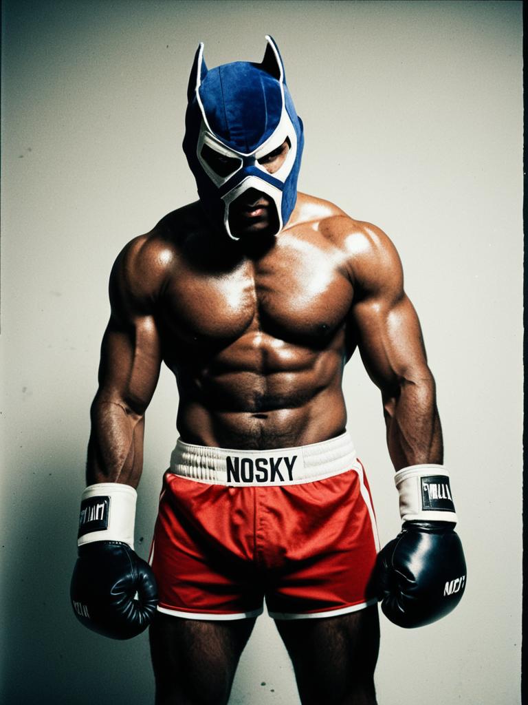 Man in Boxer Costume, photorealistic sports cosplay portrait, cinematic realism