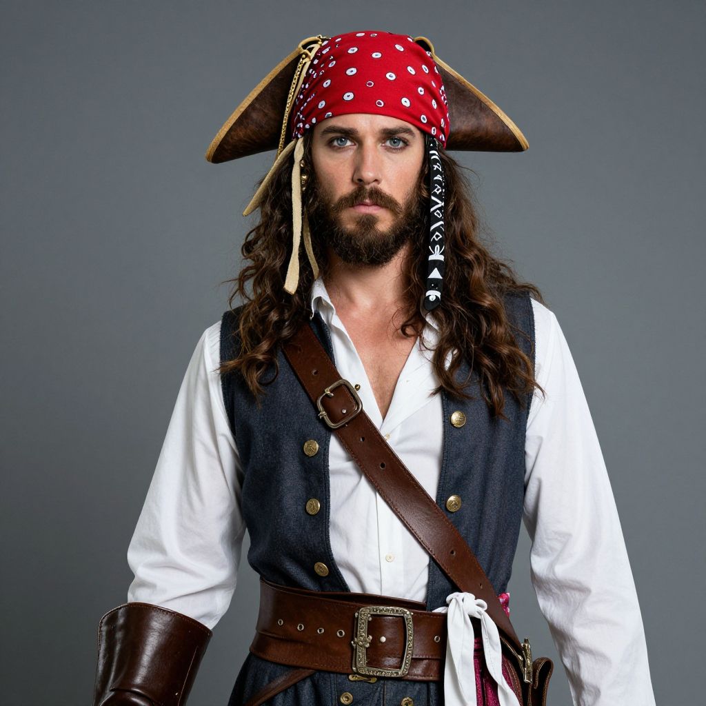 Pirate Guy Costume, pirate with long beard and red bandanna