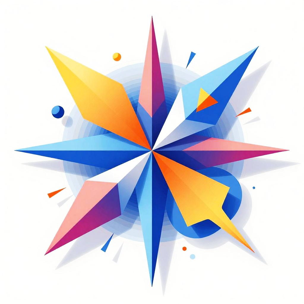 Illustrator AI generator designing an abstract geometric pattern bursting with bright colors and sharp shapes, dynamic interplay of light and shadow, 3D effects with gradients and reflections, creating a visually striking complex composition with clean lines and fluid forms.