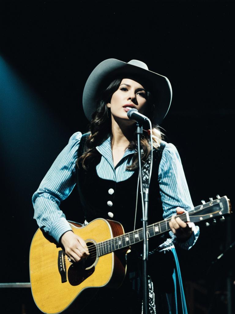 Woman in Country Music Singer Costume, cinematic realism, dramatic stage cosplay photo