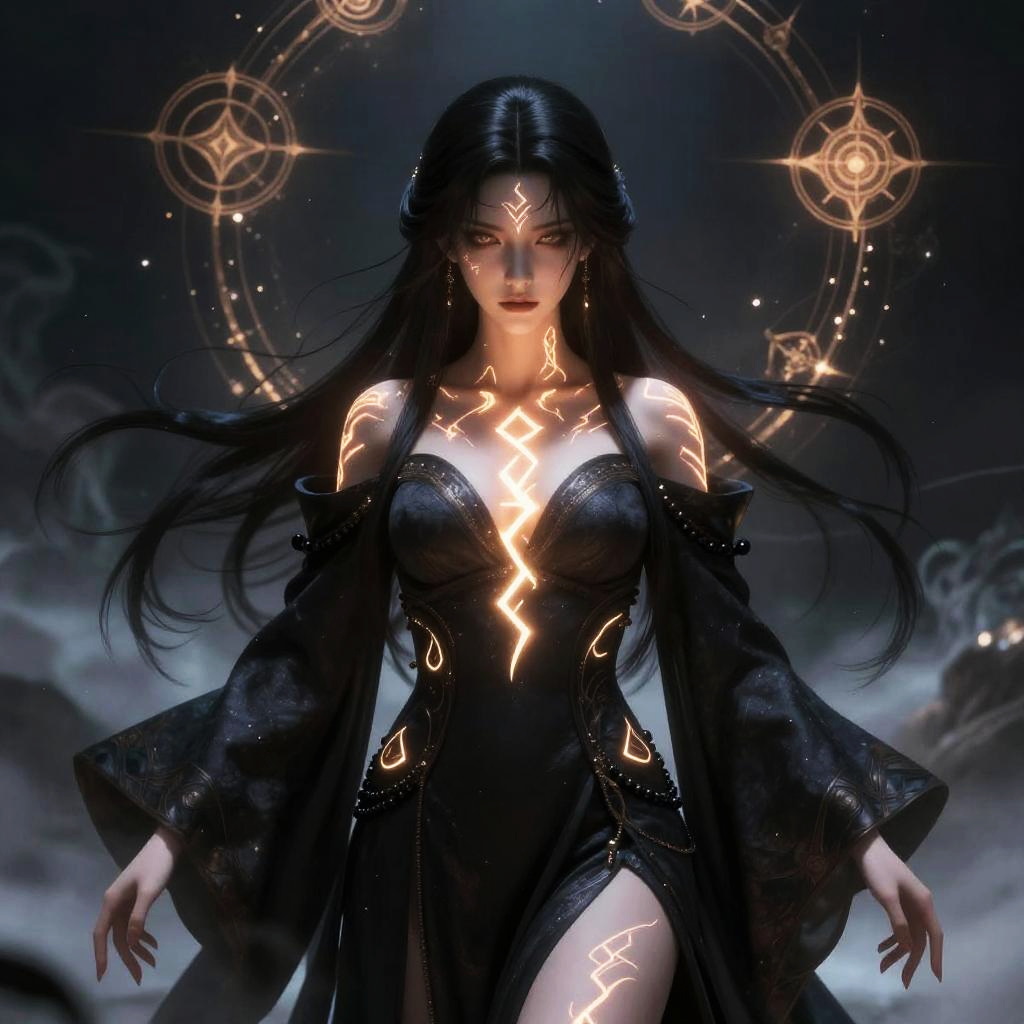 AI art anime generator free, fantasy anime female mage casting spells in a mystical ancient temple, elaborate robes with glowing runes, swirling magical effects, rich jewel-toned colors, intricate backgrounds with floating crystals and arcane symbols, highly detailed artwork