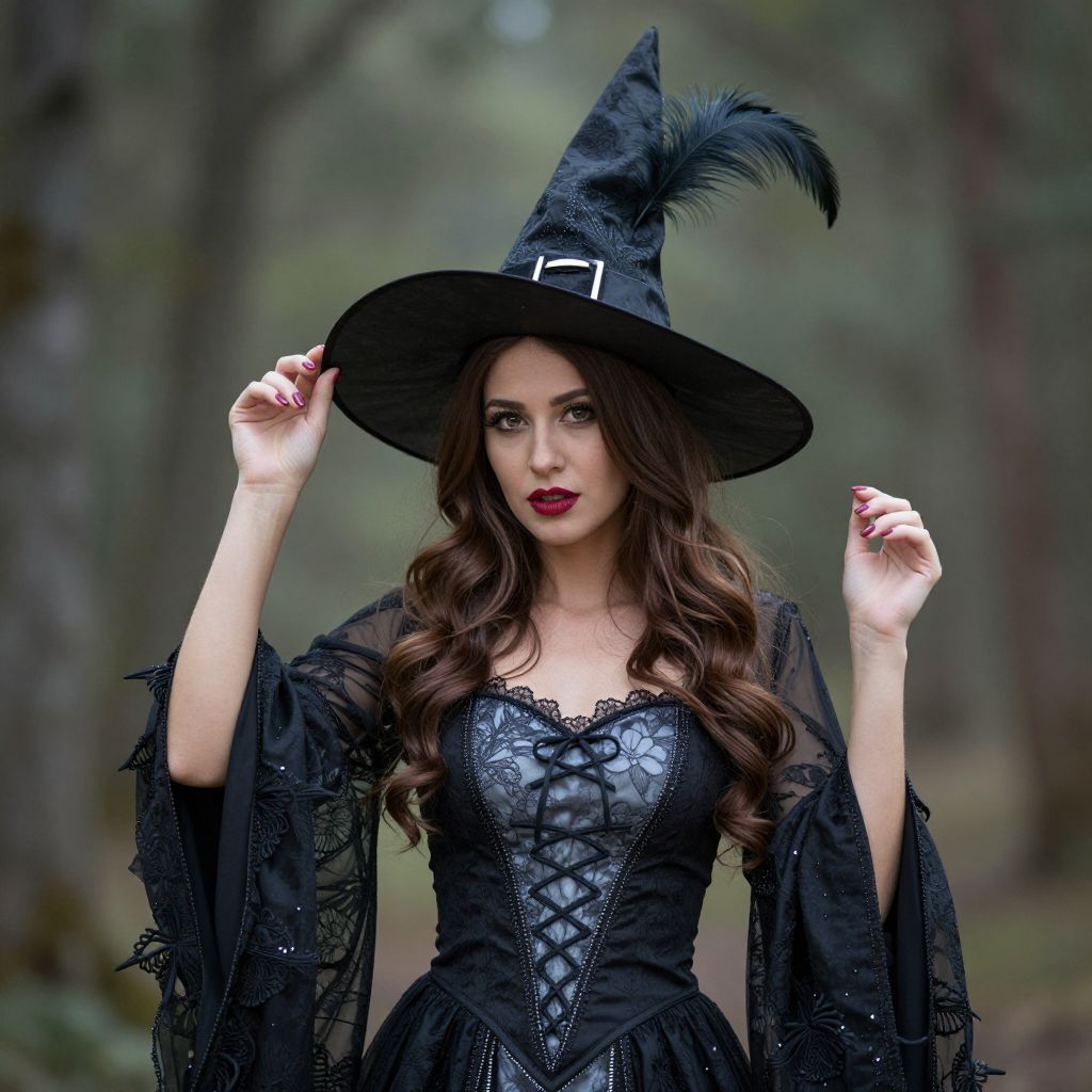 Woman in Witch Costume with Feathers