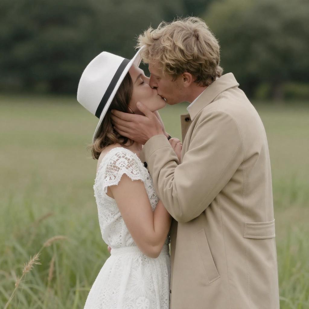 Romantic Moment in a Grassy Field