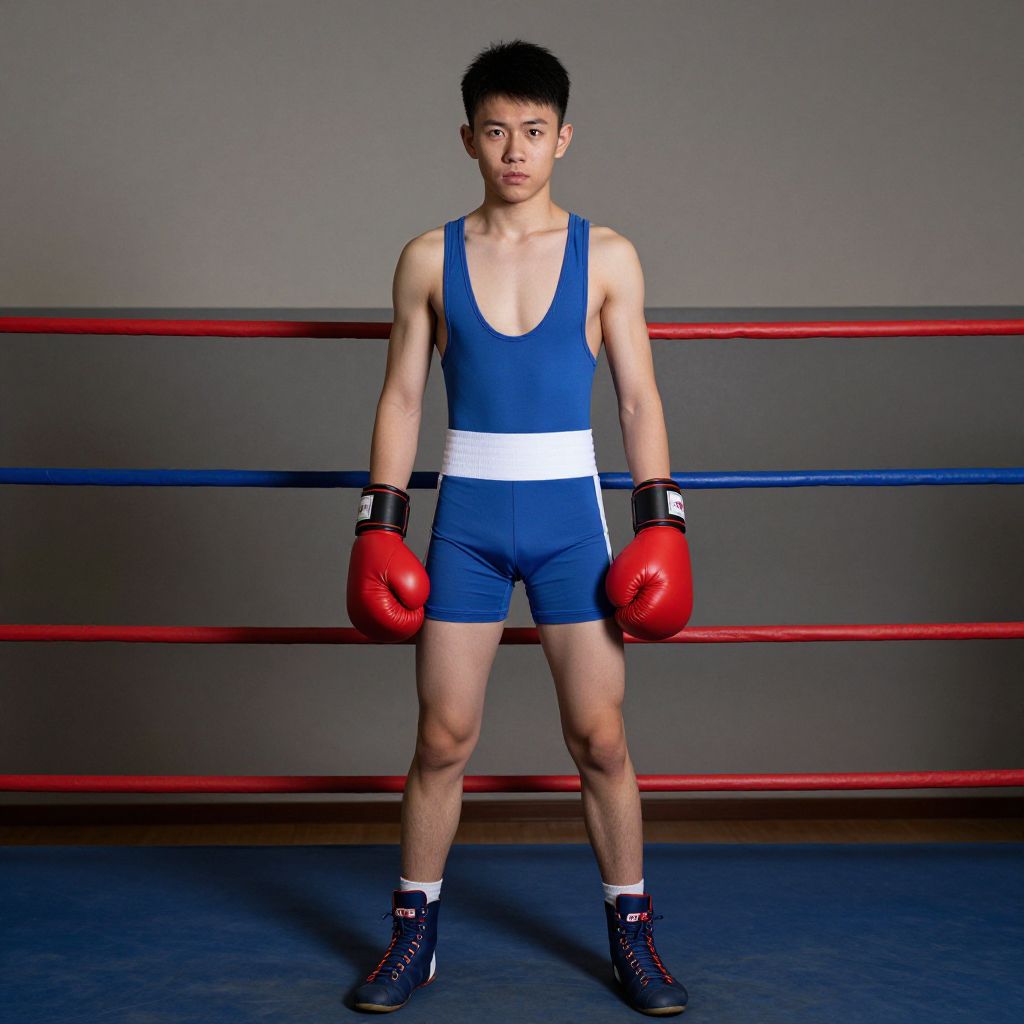 Young Wrestler in Ring Costume