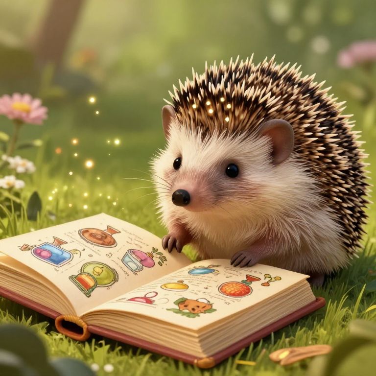 Craft an image reminiscent of Beatrix Potter's whimsical illustrations, portraying a wise old hedgehog adorned in Victorian attire and spectacles from a unique low-angle perspective. The hedgehog rests on a colossal toadstool in a mystical forest clearing, surrounded by vivid autumn hues and sparkling fairy lights, evoking feelings of wonder, curiosity, and nostalgia for an enchanting world untouched by time.