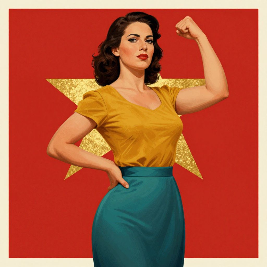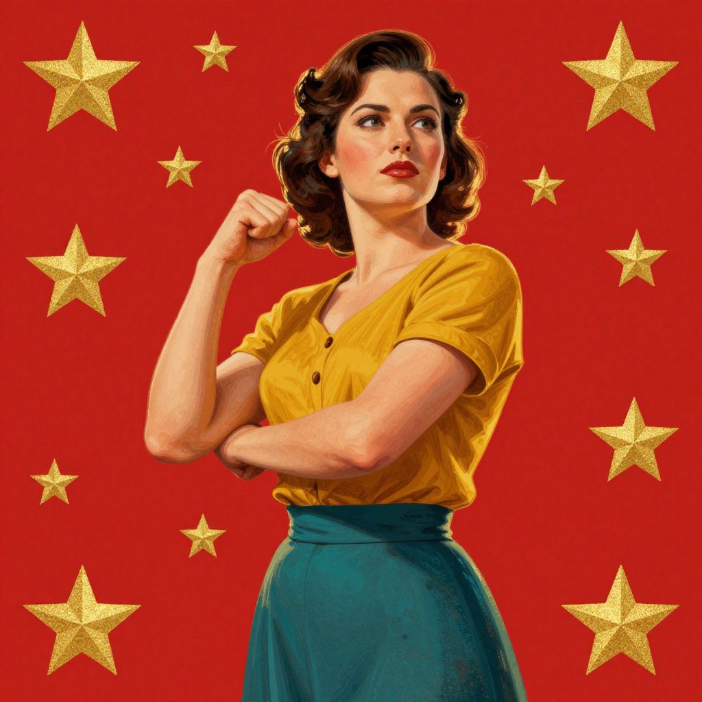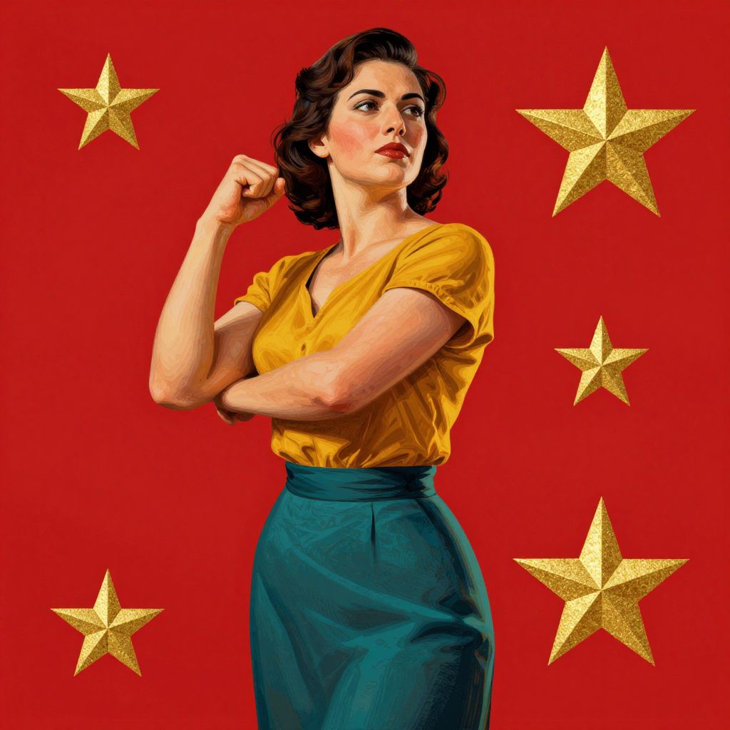 A vibrant digital illustration inspired by socialist realism, featuring a confident woman in a mustard yellow top and teal skirt, set against a bold red background with golden stars, symbolizing strength and empowerment in a retro-inspired, high-definition style. #art #digitalart #socialistrealism #femininestrength #vintagestyle #propagandaart #strongwoman #visualdesign #illustration #highdefinition #retroaesthetic #goldenhourlighting #computergeneratedart #artistreference #hungliu #transformedimagery #feminism #powerfulwomen #visualimpact #artisticexpression #visualcommunication #visualstorytelling #artisticvision #artisticinnovation #artisticcreativity #artisticinterpretation #artisticexpressionism #artisticrevolution #artistictransformation #artisticreimagining #artisticreinterpretation #artisticreinvention #artisticreform #artisticrenewal #artisticreconstruction #artisticreconfiguration #artisticrecomposition #artisticrecombination #artisticrecreation #artisticreconstruction #artisticreconstruction #artisticreconstruction #artisticreconstruction #artisticreconstruction #artisticreconstruction #artisticreconstruction #artisticreconstruction #artisticreconstruction #artisticreconstruction #artisticreconstruction #artisticreconstruction #artisticreconstruction #artisticreconstruction #artisticreconstruction #artisticreconstruction #artisticreconstruction #artisticreconstruction #artisticreconstruction #artisticreconstruction #artisticreconstruction #artisticreconstruction #artisticreconstruction #artisticreconstruction #artisticreconstruction #artisticreconstruction #artisticreconstruction #artisticreconstruction #artisticreconstruction #artisticreconstruction #artisticreconstruction #artisticreconstruction #artisticreconstruction #artisticreconstruction #artisticreconstruction #artisticreconstruction #artisticreconstruction #artisticreconstruction #artisticreconstruction #artisticreconstruction #artisticreconstruction #artisticreconstruction #artisticreconstruction #artisticreconstruction #artisticreconstruction #artisticreconstruction #artisticreconstruction #artisticreconstruction #artisticreconstruction #artisticreconstruction #artisticreconstruction #artisticreconstruction #artisticreconstruction #artisticreconstruction #artisticreconstruction #artisticreconstruction #artistic