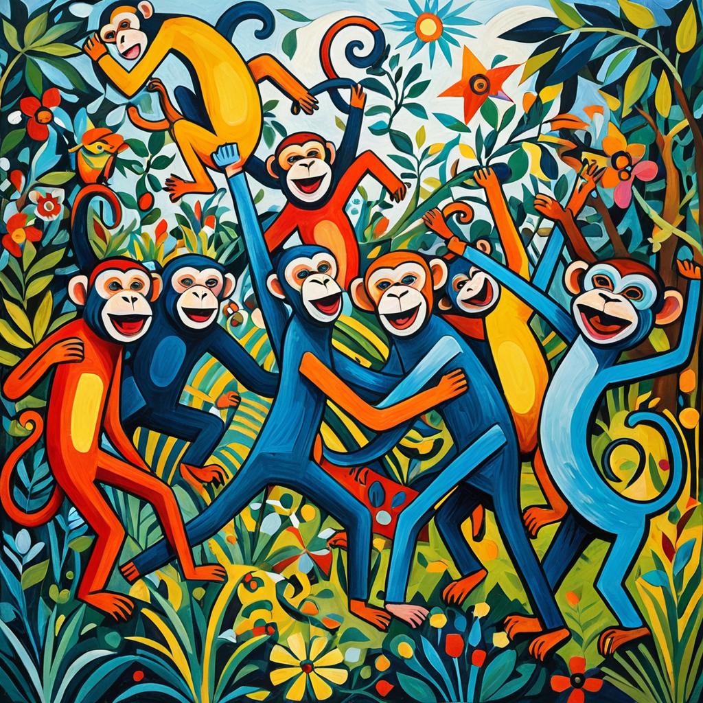 A Picasso-style garden of hummingbirds with vibrant and chaotic brushstrokes, playful and whimsical. High quality, abstract, colorful, energetic, cubist. majestic setting with vivid tones, expressive and artistic, featuring surreal abstract shapes.