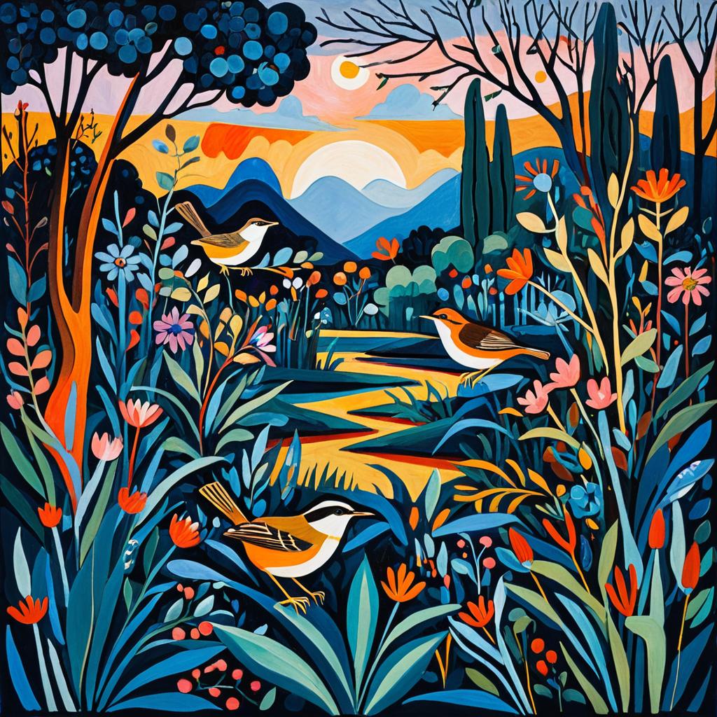 Vibrant Picasso-Style Hummingbird Garden