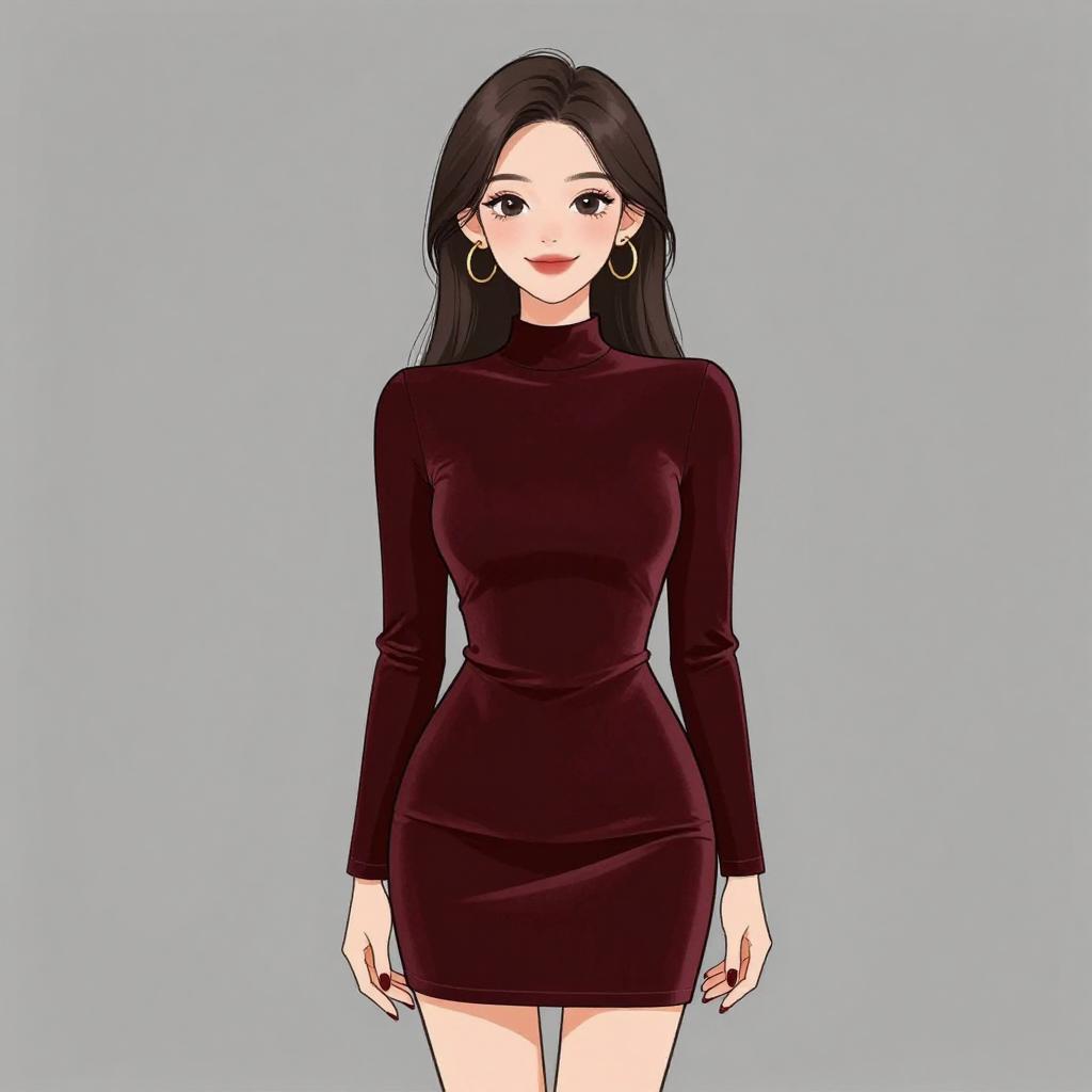 Woman with pretty face and pretty hair. smiling Woman, contemporary chic, fitted high-neck top in soft pink, long sleeves, paired with a glossy pastel pink mini skirt with an asymmetrical cut, white studio background --sref 1467