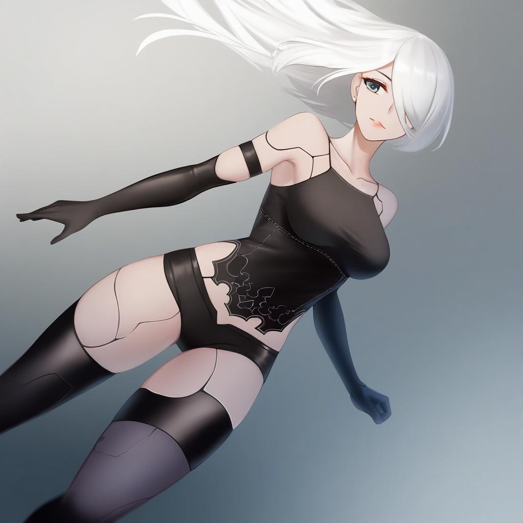 Illustration of A2 (nier:automata), nier (series) in the style of Sho-n-d