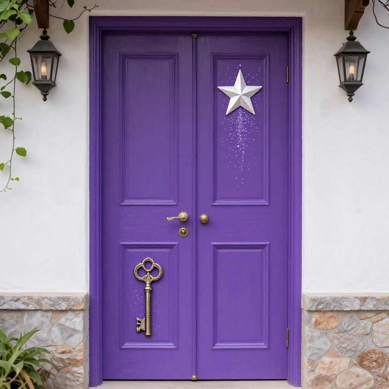 Purple Fairy Door with Star, Key and Magic Fairy Dust