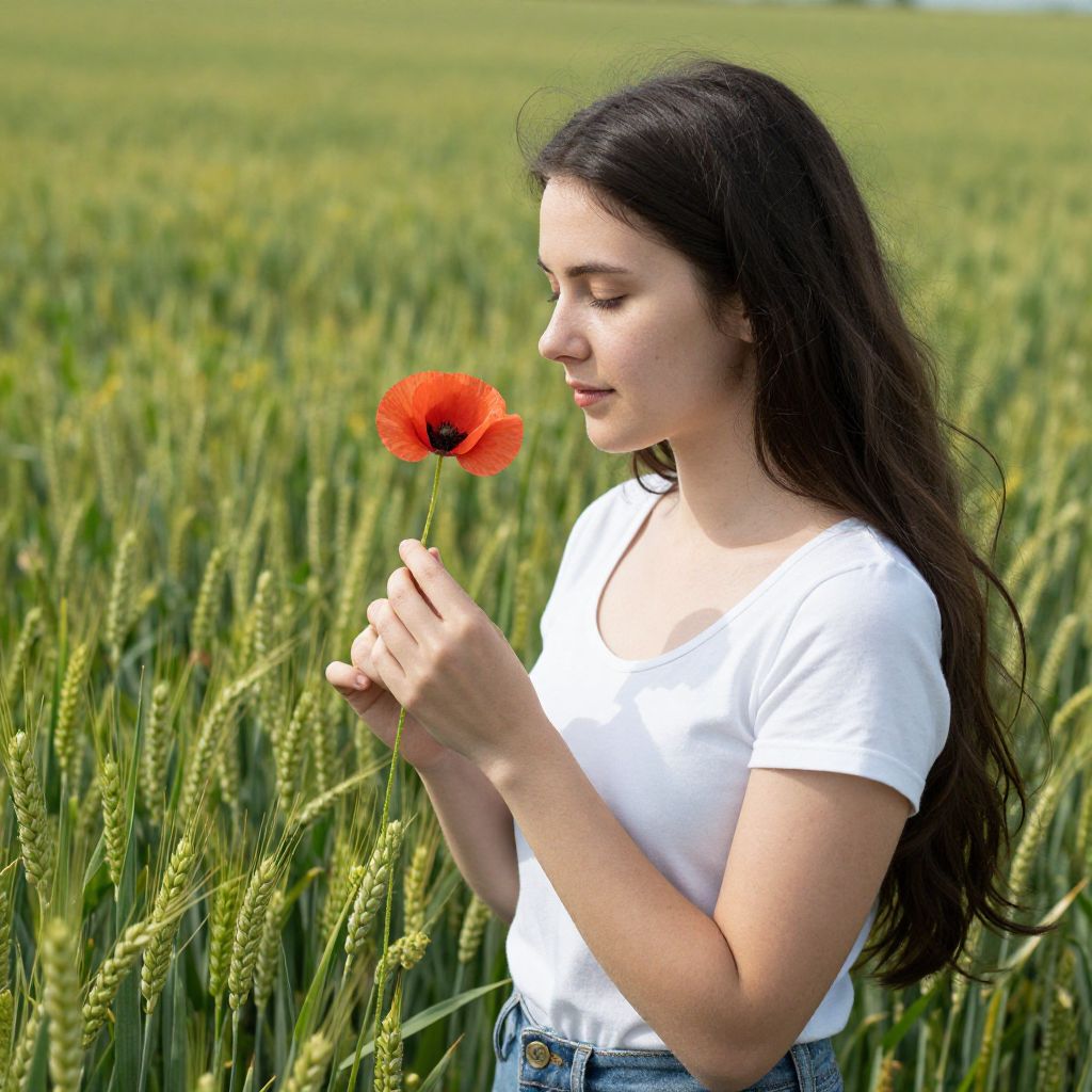 Woman in Poppy Field of Rye