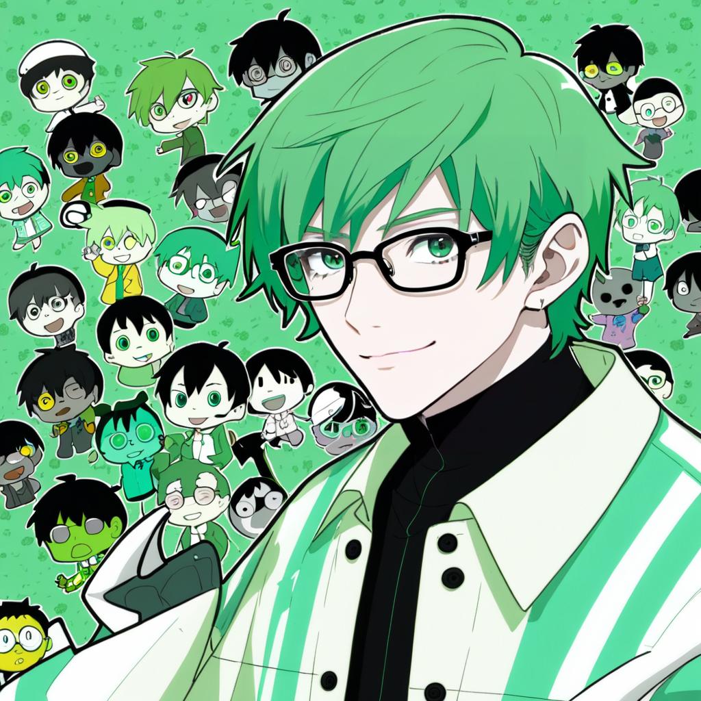 Gumiya, vocaloid, 1boy, glasses, green hair, jacket, long sleeves, by artist mutsuki (moonknives), anime