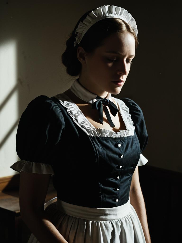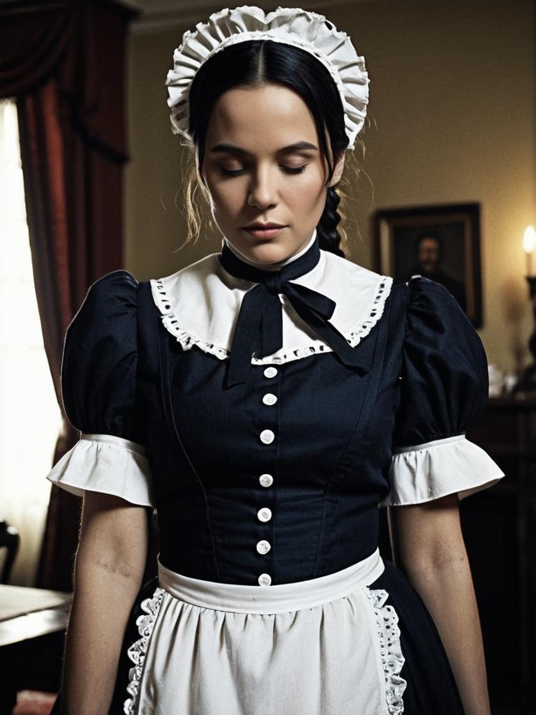 Woman in Django Unchained Maid Costume, cinematic realism, sharp detailed photo