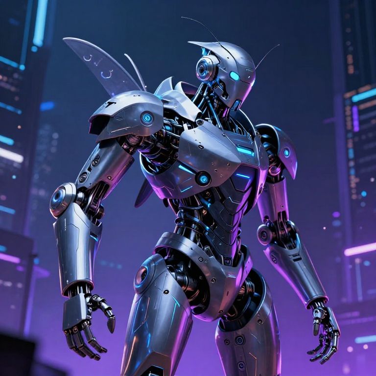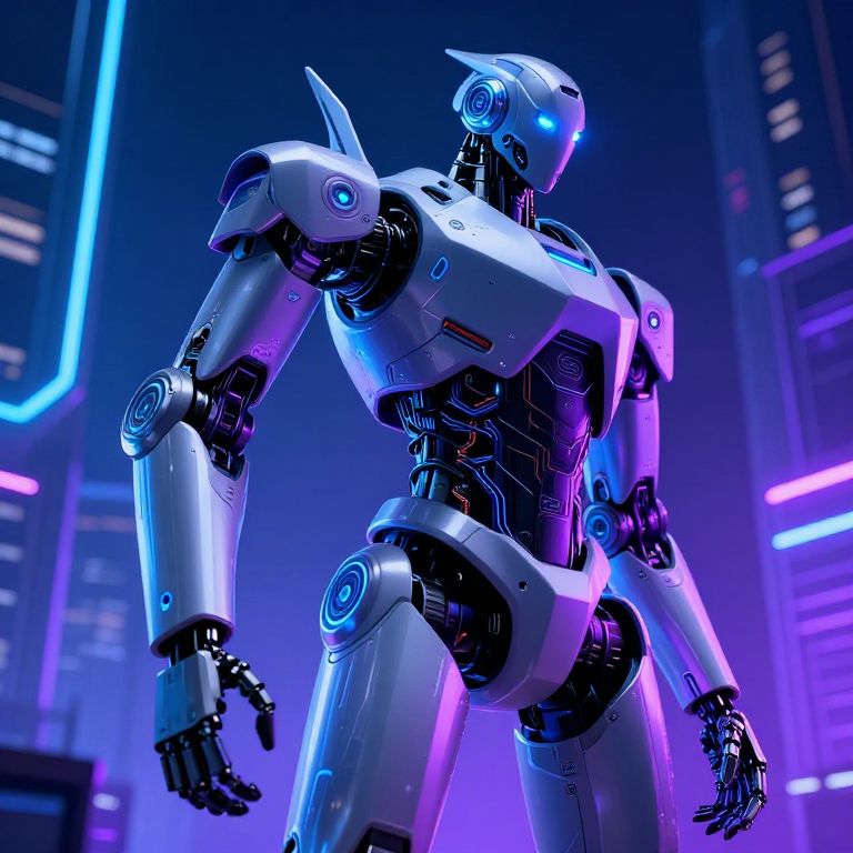 Futuristic Blue Cyberpunk Robot