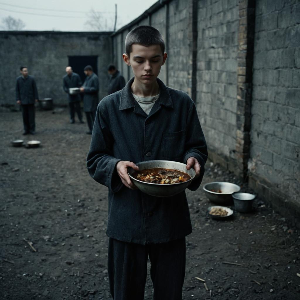 Gloomy Prison Scene with Young Inmate