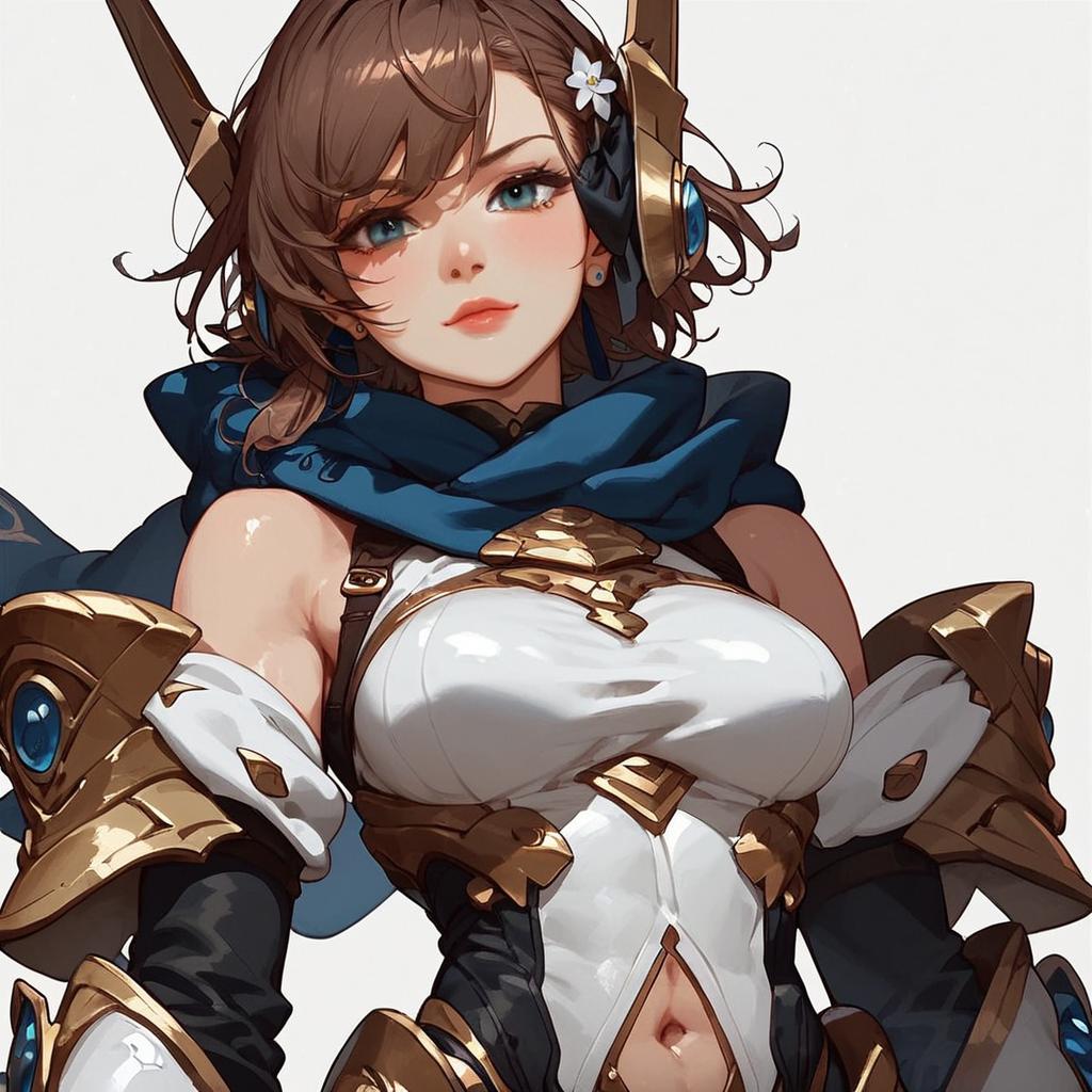 Score_8_up, score_7_up, source_anime, rating_explicit, best quality, masterpiece, anime screencap, source_anime, (ai-generated:0.3), acak, 1girl, large breasts, cleavage, navel, midriff, seductive smile, hair bun, double bun, bun cover, headband, armor, pauldrons, gauntlets, greaves, black thighhighs, skirt, gloves, red ascot, underwear, loincloth, yellow lined blue bikini armor, v, one eye closed, spoken heart, dynamic pose, fantasy, in town