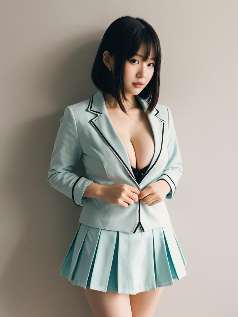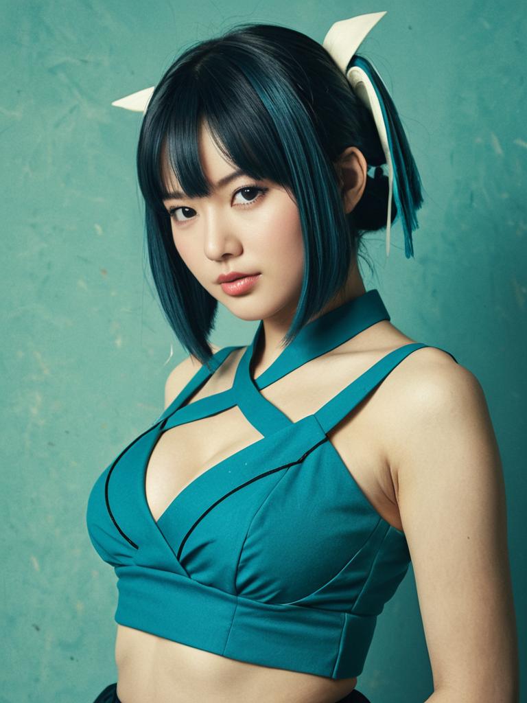 Sexy cosplay woman character wearing Miria Akagi costume. Realistic photo. Jane Doe dressed as Miria Akagi --sref 1387