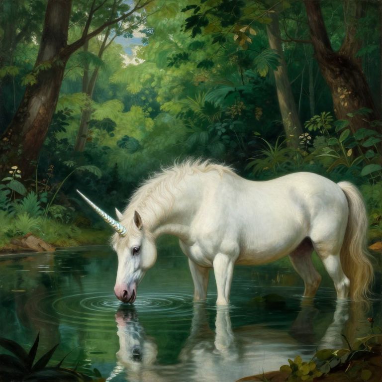 Craft an enchanting woodland scene reminiscent of classic fairy tale illustrations, depicting a serene environment where delicate, glowing fireflies dance around an ethereal unicorn standing near a babbling brook. The majestic creature's iridescent, shimmering coat catches the light as it gracefully bends to drink from the crystal-clear water, casting gentle ripples across the surface. This captivating moment captures a sense of wonder and tranquility within the magical forest, inviting viewers to step into a world where extraordinary creatures coexist harmoniously with nature.