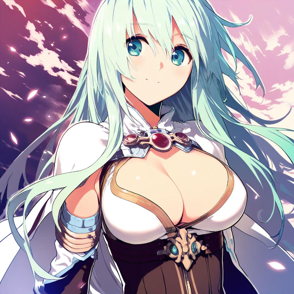 Alchemist (ragnarok online), ragnarok online, 1girl, long hair, large breasts, medium breasts, cleavage, elbow gloves, fingerless gloves, by artist gotou keiji, illustrious