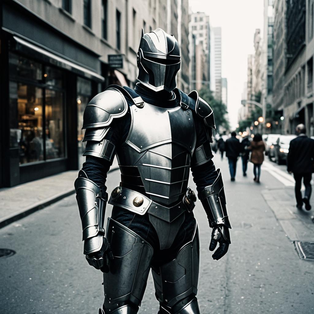 Hero in Armor on City Street