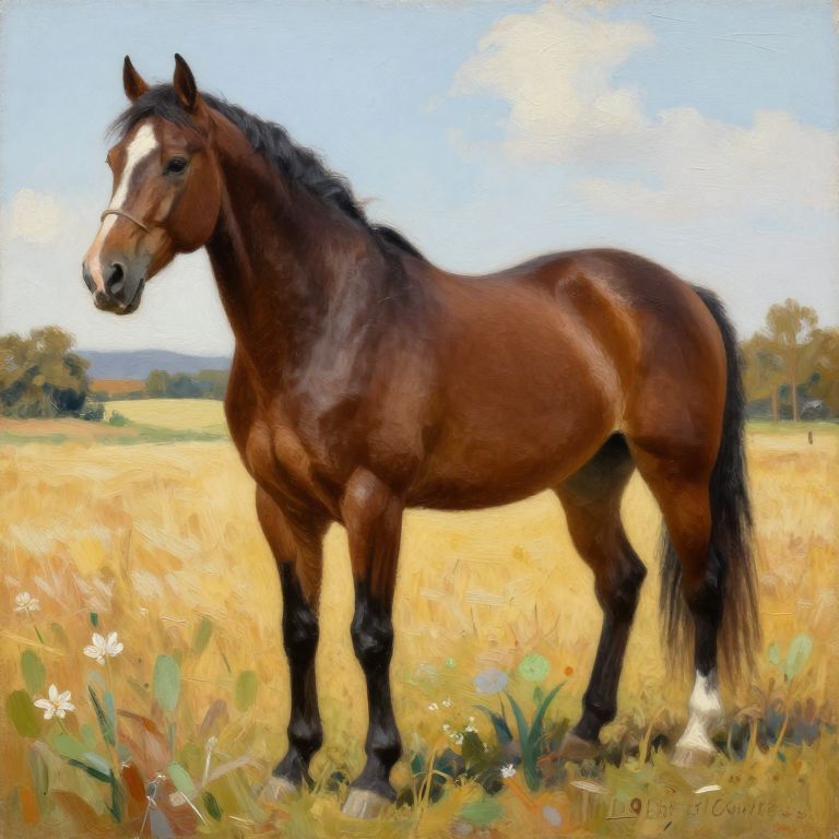 Majestic Brown Horse in Golden Field