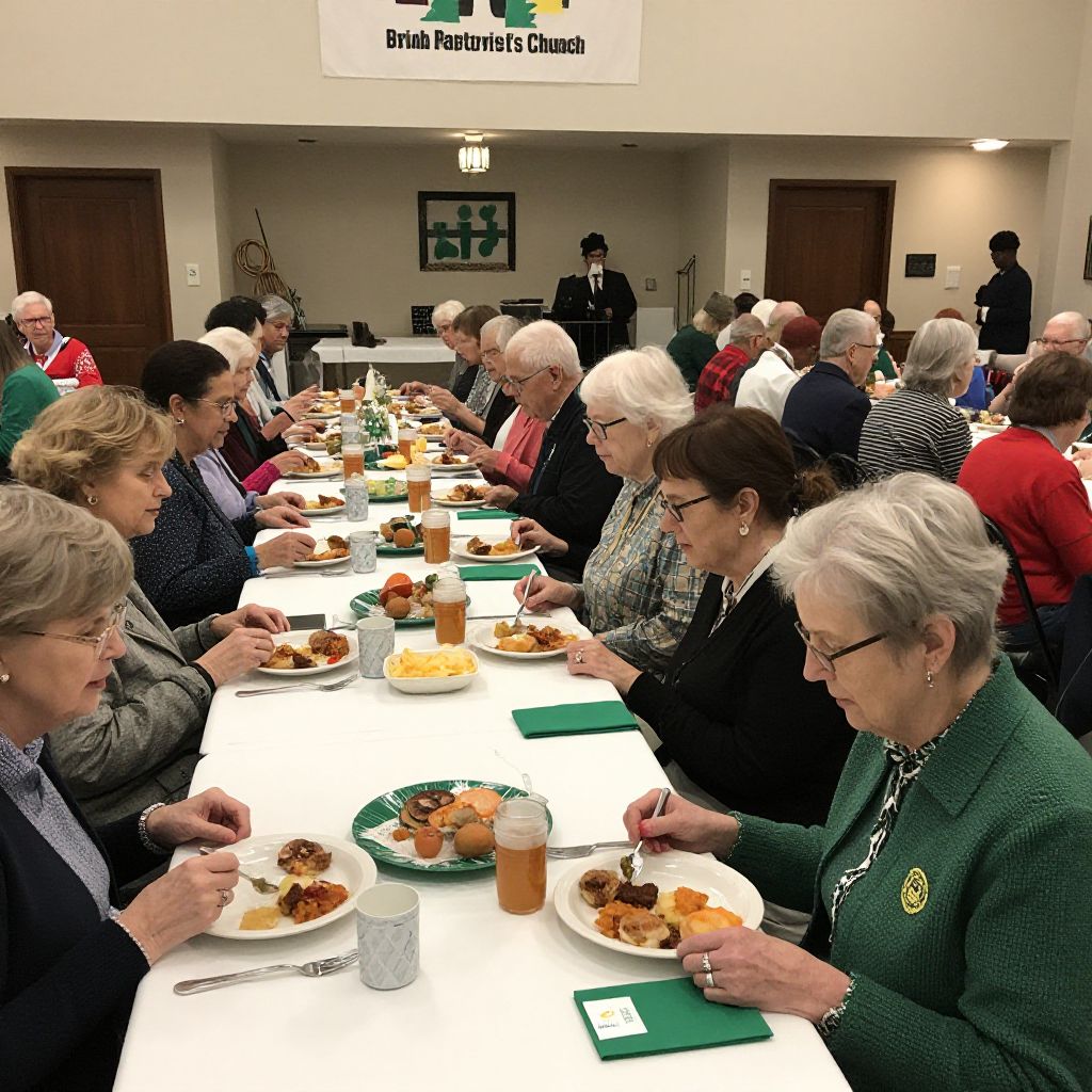 Elderly woman enjoying a meal at the St. Patrick's Dinner hosted by Hygiene United Methodist Church, where over 300 guests partake in a community-focused event celebrating tradition and fellowship.