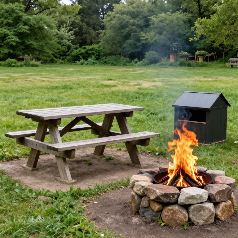 Picnic Table, Fire ring, and Bear box