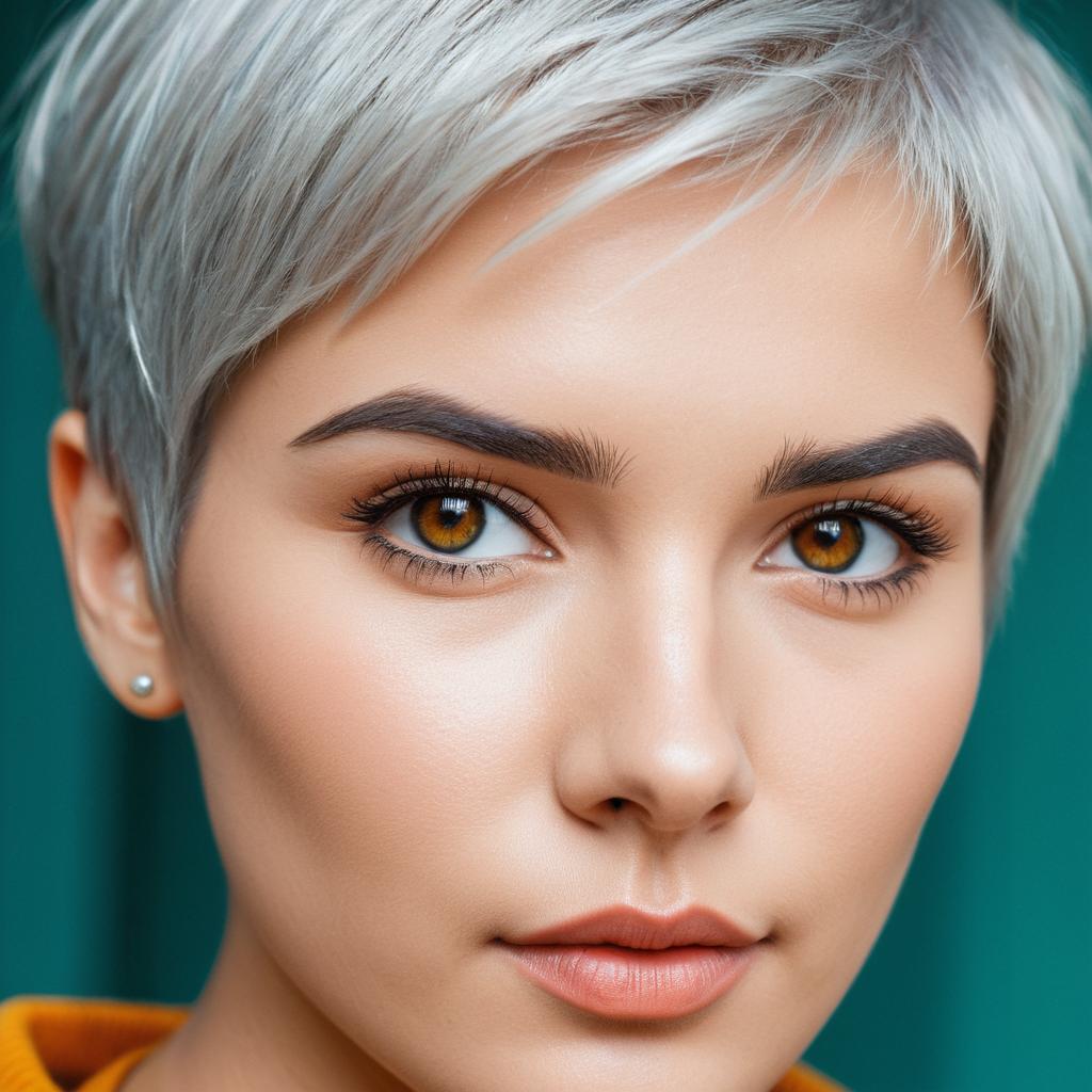 Close-up view of a naturally gorgeous man with green eyes, short wavy blonde hair, and a rugged appearance, bold autumn-colored natural makeup, in a chilly, autumn environment. Rendered in hyper-realistic, ultra-detailed style with points of light, soft translucence, and ambient occlusion. Medium shot, capturing intense energy, ultra-high resolution, with cinematic dramatic lighting, elegant perfectionism, illustration style, featuring dramatic lighting and vignette.