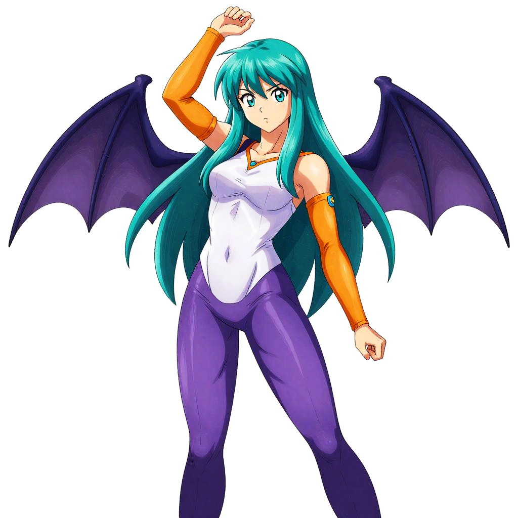 Digital anime-style drawing of a female demon character floating in a cloud-filled sky. She has long teal hair, black bat-like wings, and wears a tight, dark red, off-shoulder dress with black gloves and thigh-high boots. Her expression is confident and slightly mischievous. The background is a gradient of purple to white, with fluffy clouds below.