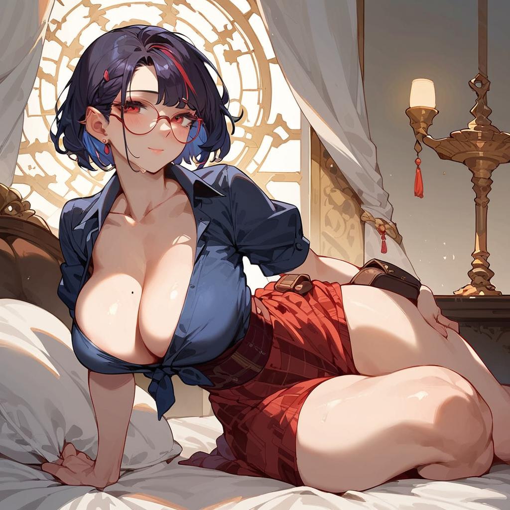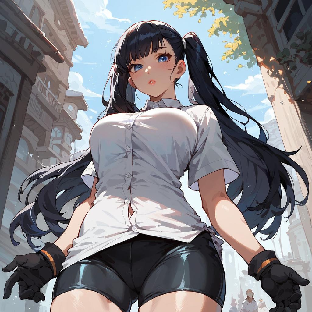 Score 9, score 8 up, score 7 up, score 6 up, score 5 up, score 4 up, source anime, female, ijiranaide nagatoro-san, standing, shirt, skirt, large breasts, smug, looking at viewer, jojo pose